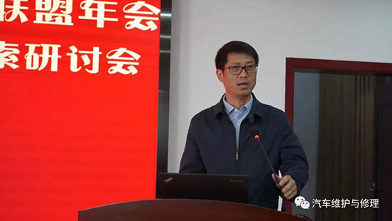 中國汽車維修行業(yè)協(xié)會副秘書長、《汽車維護與修理》雜志社副社長于開成主持會議