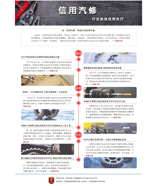 2017年12月27日,全國汽車維修行業(yè)信用信息共享平臺暨信用汽修網(wǎng)站正式上線啟動,成為汽車維修行業(yè)首個信用信息共享平臺。