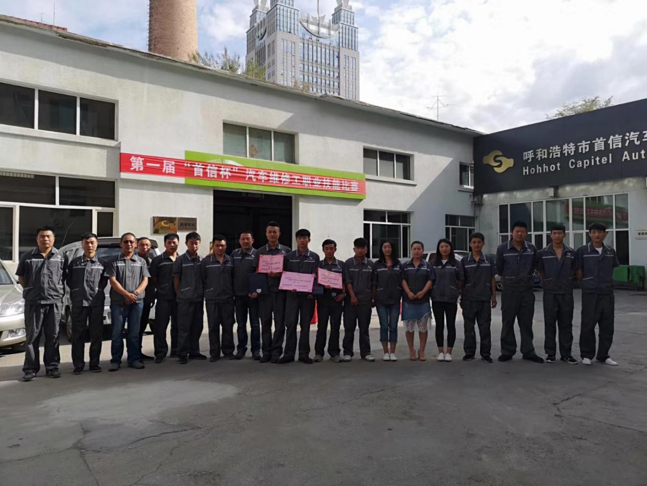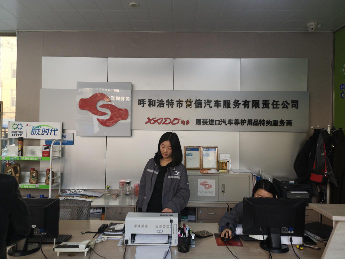 呼和浩特市首信汽車服務有限責任公司位于市中心新華廣場對面巴彥塔拉飯店后院。成立于2009年,是一般納稅人企業,國家二類維修企業,全國放心汽修認證企業,內蒙古汽車行業副會長企業,內蒙政府機關公務用車定點維修采購單位。現擁有員工30多位,是一支維修服務及零件供應為一體的優秀團隊,可做發動機總成大修、中修、保養,鈑金、噴漆、事故維修、裝飾等,公司注冊資金100萬元,總占地面積4000多平米,設有先進、齊全的維修設備、寬敞整潔的維修車間,主修廠房400平米,機修車間400多平米(包括8個兩柱、2個四柱舉升機)、鈑金車間400多平米(包括大梁校正儀、地八卦、整形機)、噴漆車間400多平米(包括無塵烤房)、美容裝具車間400多平米,100多平米的客戶免費洗車房、150多平米的零件倉庫、150多平米的客戶接待室和1500多平米的客戶停車場。客戶可以通過二樓溫馨休閑室觀看到嚴謹有序的維修保養流程和車輛維修全過程。