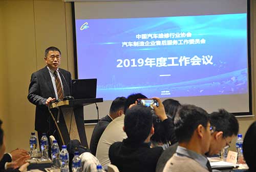 蓋方主任委員兼秘書長向與會代表匯報了售后工委2018年度工作情況及2019年工作部署。重點講解了售后服務客戶滿意度(卡思)調查項目開展情況;詳細介紹了售后工委和會員單位共同探討多次的為解決主機廠售后服務渠道下沉的“聯合專修”項目新方案。