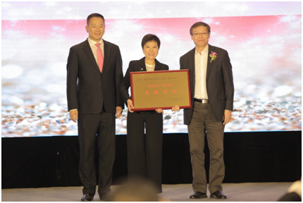 嚴波秘書長(右一)為PPG頒發“先進單位”銅牌