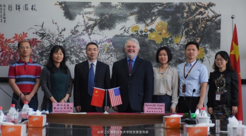 首先,季永青院長對George Tony Peffer副校長一行的來訪表示歡迎,向Tony副校長介紹了學院辦學概況、學校建設、師生規模、專業設置及國際交流合作等情況。Tony副校長對學院的盛情接待表示感謝,并介紹了美國伯米吉州立大學學校概況及在中國開展的合作辦學等情況。會上,雙方圍繞合作辦學專業,結合各自專業優勢和課程對接等方面進行了討論。雙方就《中美合作辦學通信技術項目續簽協議》進行了深入的磋商,在協商一致的基礎上,學校與美國伯米吉州立大學簽署《中美合作辦學通信技術項目續簽協議》。雙方合作辦學項目的推進,將為學生搭建更大的學習平臺,進一步提升學院的國際化辦學水平。