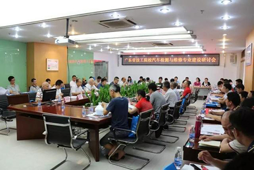 為充分交流汽車檢測與維修專業建設情況,進一步提高汽車檢測與維修類專業一體化教師的教學能力和技能水平, 6月22日,由廣東省技工院校教研會主辦、廣東省交通運輸技師學院承辦的“廣東省技工院校汽車檢測與維修專業建設研討會”在廣東省交通運輸技師學院廣州校區順利舉行。中國交通教育研究會職業技能等級認定中心副主任樓新良,廣東省道路運輸協會機動車維修檢測分會會長羅少澤,廣東省汽車配件用品行業商會會長李立全,廣東省交通運輸技師學院院長閻子剛、培訓與技能鑒定中心、汽車與機電工程系以及來自廣東省各地23所技工院校的專業老師共50余人參加本次研討會。