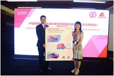 艾仕得大中國區(qū)總裁吳春平(左)和中國化工學會涂料涂裝分會秘書長 陳紅(右)共同發(fā)布《中國商用車和軌道車輛綠色可持續(xù)涂料及涂裝技術應用報告》