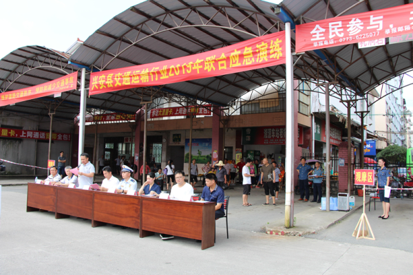 為進一步增強駕駛員對車輛安全的防范意識,提高應對各種突發事件能力,確保安全生產工作有序進行。6月19日下午,在興安縣湘源客運站開展模擬實戰應急演練活動。興安縣副縣長文新祥、興安縣交通運輸局負責人、消防大隊相關負責人現場指導演練,興安縣全部客運企業、貨運企業、客運場站的負責人及安管人員、駕駛員共約200人參與了演練觀摩。