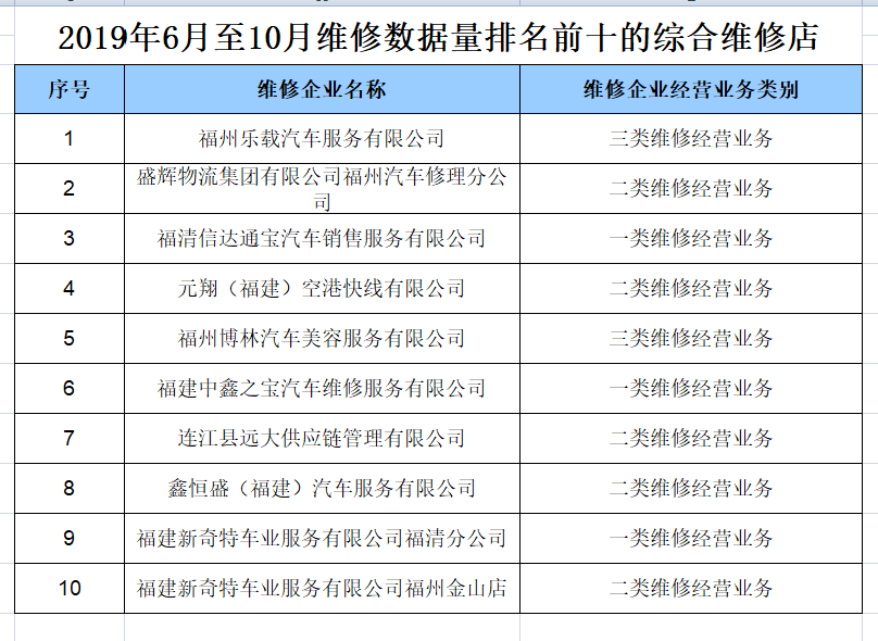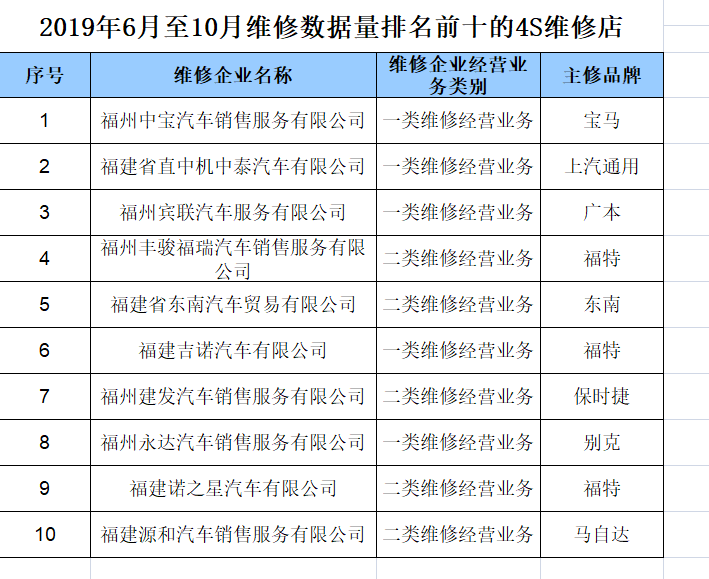 今年6月至10月維修數據量前十名的維修企業榜單已出爐(詳見表格)。今后用戶量、數據量積累和消費者評價等將形成動態監督體系,通過市場認可度激勵維修企業創口碑、重信譽、樹品牌。