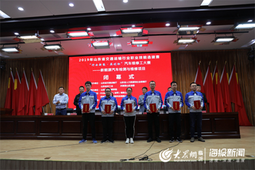 10月20日下午, 由山東省交通運輸廳、山東省人力資源和社會保障廳、山東省總工會、共青團山東省委四部門聯合主辦的2019年山東省交通運輸行業職業技能選拔賽“行云新能·英創杯”汽車維修工大賽新能源汽車檢測與維修項目在山東交通技師學院圓滿閉幕。