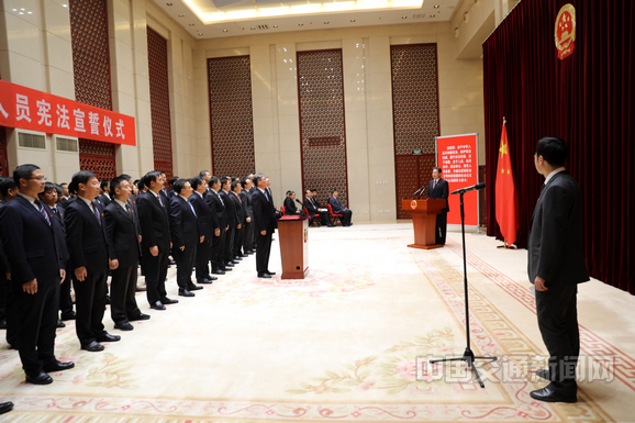 根據《中華人民共和國憲法》和《交通運輸部國家工作人員憲法宣誓實施辦法》,近兩年新任命的部機關司局級和處級干部,部屬單位司局級干部依法進行憲法宣誓。