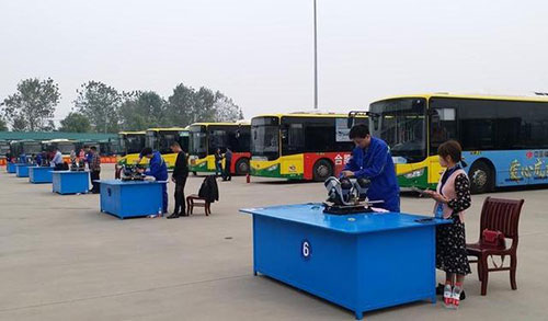 實際操作考試分別考核參賽選手純電動客車故障診斷排除和無油活塞式電動空壓機總成拆裝,以及汽車維保工藝規范。隨著一聲哨響,選手們開始了激烈角逐。各參賽隊員全神貫注、沉著冷靜,動作嫻熟,精益求精,忙而不亂,比質量、比工藝、比速度,展示了精湛技藝,顯示了一流水準,賽出了水平,賽出了風格,賽出了友誼。比賽中,合肥公交集團職工團結奮進、勇創一流的團隊精神同樣得到了充分展示。