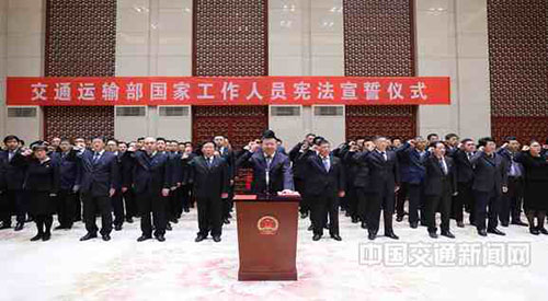 根據(jù)《中華人民共和國憲法》和《交通運(yùn)輸部國家工作人員憲法宣誓實施辦法》,近兩年新任命的部機(jī)關(guān)司局級和處級領(lǐng)導(dǎo)干部、部屬在京單位司局級干部參加憲法宣誓。