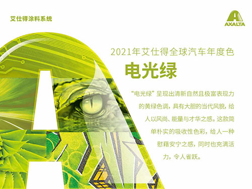 (2021年1月13日——費城訊)全球領先的液體和粉末涂料供應商艾仕得(紐交所代碼:AXTA)發布其2021年全球汽車年度色——“電光綠”。