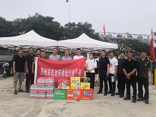 7月23日下午,鄭州市機動車修配行業協會黨支部書記、會長胡長樂一行三人來到河南東城天道汽車銷售服務有限公司等企業,慰問連日來奮戰在防汛一線的救援服務工作人員,并為他們送去方便面、礦泉水等慰問品。