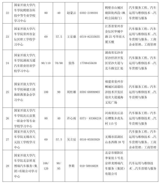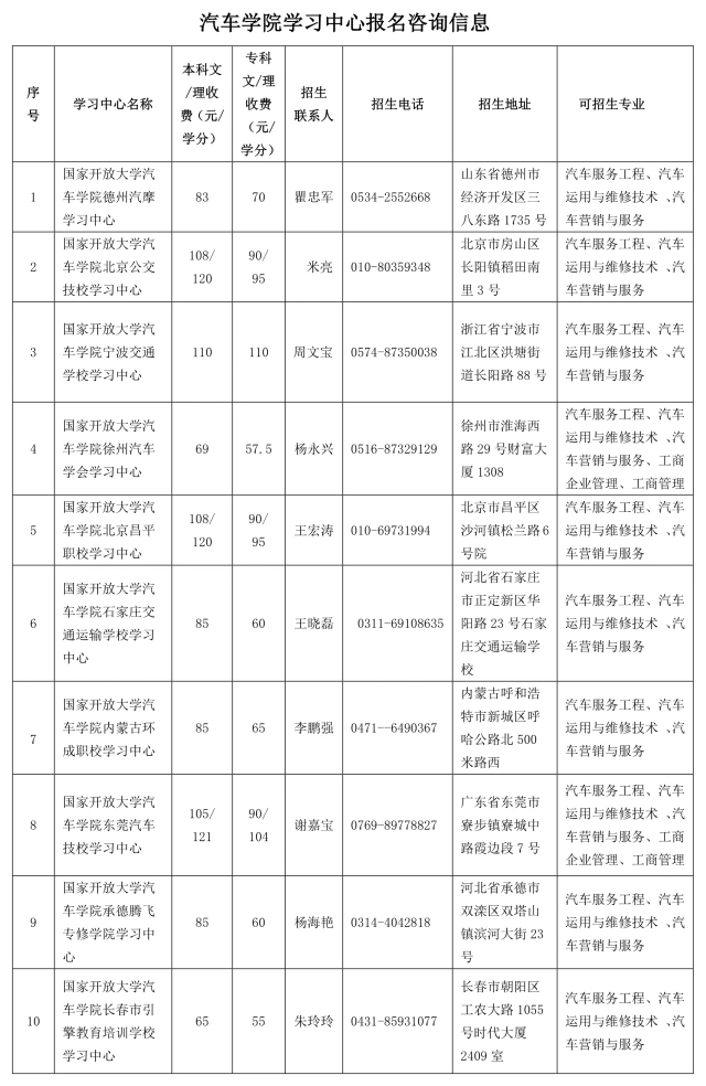 注:工商企業管理、工商管理專業僅限于部分學習中心可招,詳見《汽車學院學習中心報名咨詢信息》表。
