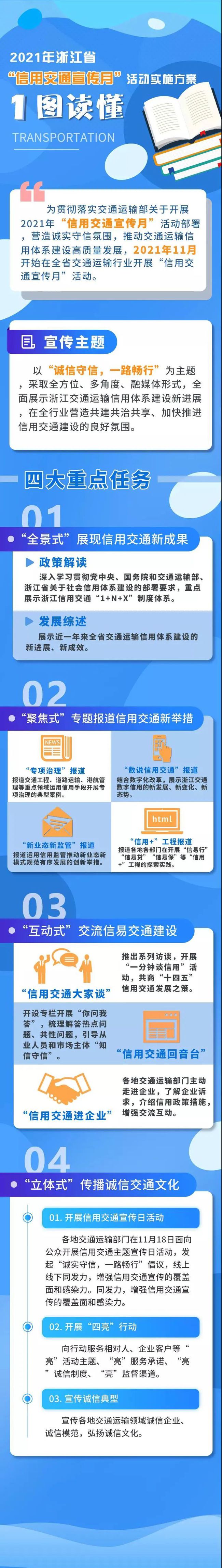 根據(jù)交通運(yùn)輸部部署,浙江省交通運(yùn)輸廳在全省啟動(dòng)2021年“信用交通宣傳月”活動(dòng)。今日起,本報(bào)推出“信用交通宣傳月特別報(bào)道”專(zhuān)欄,以“誠(chéng)實(shí)守信,一路暢行”為主題,采取多種形式全面展示浙江交通運(yùn)輸信用體系建設(shè)新進(jìn)展新成果,深入報(bào)道各地交通運(yùn)輸部門(mén)在重點(diǎn)領(lǐng)域信用專(zhuān)項(xiàng)治理、數(shù)字信用、信用監(jiān)管、“信用+”工程建設(shè)等方面的創(chuàng)新經(jīng)驗(yàn)做法,努力在全行業(yè)營(yíng)造誠(chéng)實(shí)守信氛圍,推動(dòng)交通運(yùn)輸信用體系建設(shè)高質(zhì)量發(fā)展。