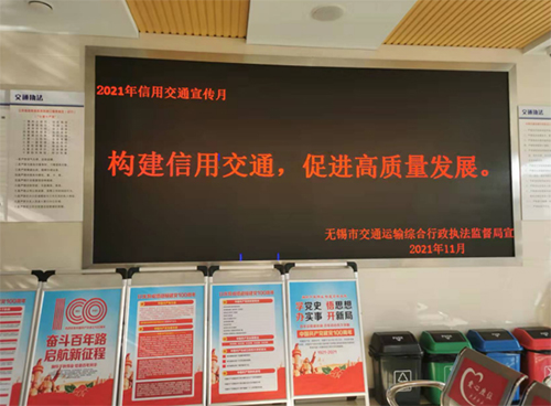 無錫市交通運輸部門充分發揮基層執法站所、大廳、客運場站宣傳陣地的作用,在政務中心、基層海事所大屏設置了滾動標語,向辦事群眾開展信用交通宣傳。同時在客運車站大屏進行宣傳標語的投放,向乘客及社會公眾向群眾傳遞了重視信用交通、爭創文明發展的新時代交通精神,有效擴大了宣傳的覆蓋面,全方位營造濃厚的宣傳氛圍。