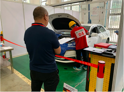 本次競賽采取理論知識和技能操作相結合的方式,以汽車維修工國家職業標準三級(高級工)知識和技能為基礎,突出新能源汽車檢測與維修新知識、新技術、新技能等內容,著重考核選手職業綜合能力。競賽成績中理論知識考試占30%,技能操作考核占70%。技能操作競賽包括新能源汽車動力總成拆裝與檢測、新能源汽車故障診斷與排除2個項目,參賽選手獨立完成全部項目。