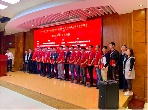 11 月26 日-28日,2021年廣東省交通運輸行業新能源汽車維修工職業技能競賽在深圳舉行,來自全省19個地市的60余名汽車維修企業的汽車維修技術人員參加了賽事。經過兩天半的比賽,最終來自深圳的曾益強選手脫穎而出,榮獲競賽的第一名。獲得競賽總成績前 10 名選手,將按相關程序由省交通運輸廳授予“廣東省交通技術能手”稱號。其中,取得前五名成績的選手還將按相關程序由省人力資源和社會保障廳授予 “廣東省技術能手”稱號。