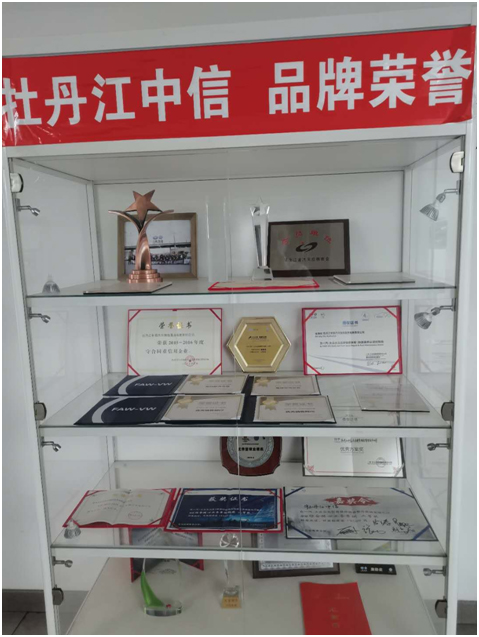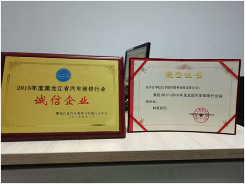 牡丹江中信汽車銷售服務有限責任公司是黑龍江省汽車維修與檢測行業會員單位。2009-2010年度、2011-2012年度、2013-2014年度、2015-2016年度、2017-2018年度、2019-2020年度、連續六屆被評為“全國汽車維修誠信企業”、2018年度“黑龍江省汽車維修行業誠信企業”。