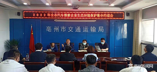 4月22日上午,亳州市交通運輸局召開汽車維修生態環境保護約談會,邀請市生態環境局相關負責人參加會議,集中約談了今年以來中心城區污染防治違規嚴重的22家汽車維修企業。