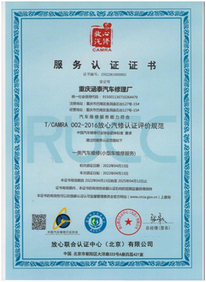 放心汽修認證證書