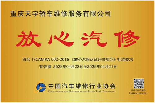 企業(yè)負(fù)責(zé)人汪總說(shuō):我希望重慶天宇轎車維修服務(wù)有限公司要以放心汽修認(rèn)證為契機(jī),要真正做到讓社會(huì)放心,讓顧客放心。真心誠(chéng)意為顧客修好車,服好務(wù)!