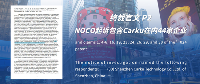不過,在2021年3月ITC立案之前,美國NOCO公司撤銷了對66家企業的指控。此后,ITC調查涉及包括華思旭(Shenzhen Carku Technology Co., Ltd., 簡稱“Canku”)在內的44家企業,其中13家為中國企業。