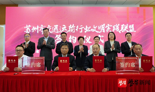 儀式上,蘇州市交通運輸局、市軌道集團、市交投集團、市公交集團共同簽署了蘇州市交通運輸行業文明實踐聯盟合作協議,標志著蘇州市交通運輸行業文明實踐聯盟正式成立。