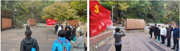 大家站在平谷第一個黨支部誕生地桃棚村紅崖洞的宣誓廣場,認真聆聽講解員講述平谷第一個黨支部誕生始末和抗日英烈故事,實地參觀了第一個黨支部誕生的紅崖洞,在宣誓廣場,由組織委員劉麗帶領大家面向鮮艷的黨旗,舉起右拳莊嚴宣誓,重溫入黨誓詞,再次激發大家的入黨初衷,深化黨性修養。