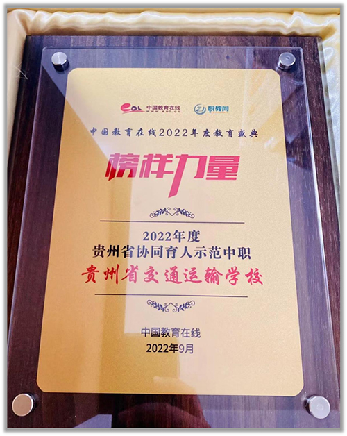 近日,中國教育在線“榜樣力量·2022年度教育盛典”評選獲獎名單揭曉,貴州省交通運輸學校榮獲“2022年度貴州省協同育人示范中職“榮譽稱號。