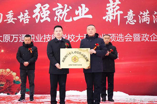 2月9日,“‘職’面未來,非你莫屬”太原萬通職業技能學校大型就業預選會暨“政企行校”簽約授牌活動在2023年新年第一場瑞雪飄飄中拉開序幕。