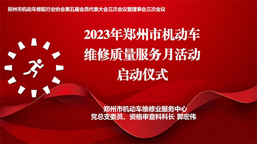 2023年2月28日,在鄭州市機動車修配行業(yè)協(xié)會第五屆會員代表大會三次會議暨理事會三次會議上,鄭州市機動車維修業(yè)服務(wù)中心黨總支委員、資審科科長郭宏偉宣讀了鄭州市機動車維修業(yè)服務(wù)中心、鄭州市機動車修配行業(yè)協(xié)會聯(lián)合下發(fā)的《關(guān)于開展2023年機動車維修質(zhì)量服務(wù)月活動的通知》(鄭修服〔2023〕1號),正式啟動了以“提振信心•共創(chuàng)滿意機動車生活”主題機動車維修質(zhì)量服務(wù)月活動。