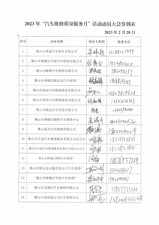 附:參與佛山市禪城區2023年“汽車維修質量服務月”活動的企業名單
