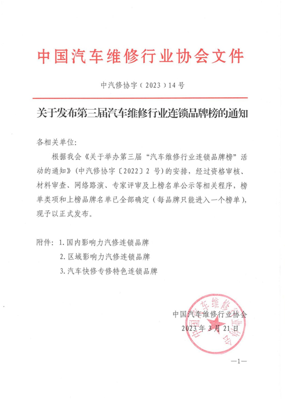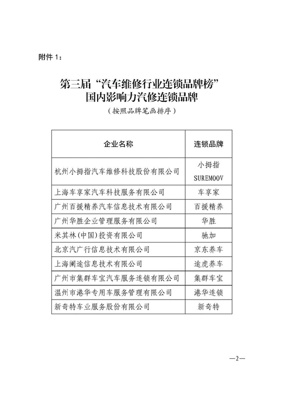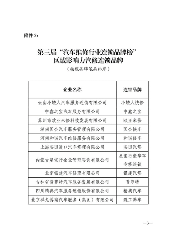 附件:關(guān)于發(fā)布第三屆汽車維修行業(yè)連鎖品牌榜的通知