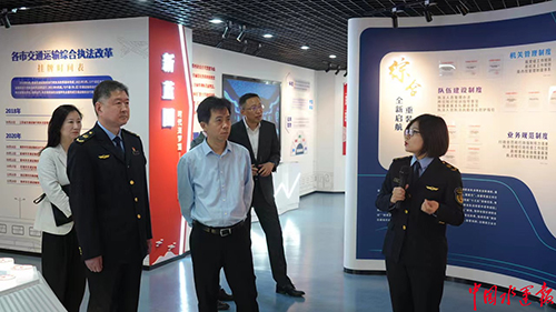 調研組實地察看了南京市交通綜合執法局五支隊七大隊雨花水上執法站、江寧區交通綜合執法大隊九竹路執法站、寧杭高速公路執法支隊一大隊執法站,現場觀摩了江蘇省交通運輸綜合行政執法監督局黨建陣地和綜合執法監測預警中心,詳細了解了“四基四化”建設、執法規范化建設和數字化指揮中心體系建設等情況,調研組對江蘇交通積極打造“黨旗紅·交通藍”品牌、推進“一體化+智慧執法+信用監管”交通綜合執法新模式建設等工作表示充分肯定。