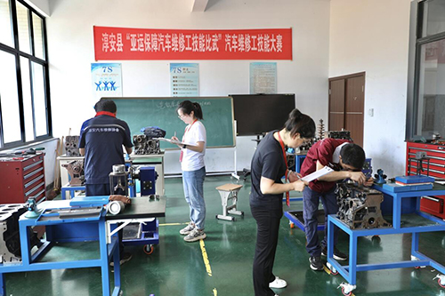 大賽分為理論培訓(xùn)和實(shí)際操作兩項(xiàng),其中實(shí)際操作共設(shè)兩個(gè)項(xiàng)目,分別為汽車故障診斷、發(fā)動(dòng)機(jī)曲柄連桿機(jī)構(gòu)的拆解、檢查和組裝作業(yè)要求。
