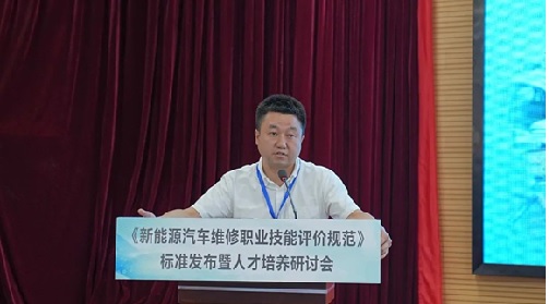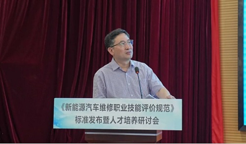 張延華對與會的專家代表、行業同仁表示熱烈歡迎,對標準編寫單位、會議承辦方的辛勤工作表示衷心感謝。他介紹了協會情況和十四五發展規劃,希望以這次發布會為契機,進一步加強新能源汽車維修技能人員的培養,為促進我國新能源汽車持續健康發展做出應有的貢獻。他指出,隨著國家《新能源汽車產業發展規劃(2021—2035年)》的實施,我國新能源汽車產業一路高歌猛進,穩居全球第一。對汽車后市場而言,既是機遇,也是挑戰。他分析了新能源售后服務體系的現狀,特別是維修技能人才的知識結構和能力水平不能跟上整車市場發展步伐,協會將進一步發揮組織協調作用,引導全行業準確把握戰略機遇,著力在轉變發展方式、提高質量效益、培育創新能力等方面下功夫,全面提升汽車維修業可持續發展和服務保障能力。要加強與職業院校合作,積極促進新能源汽車維修師資隊伍建設,通過職業競賽、技能等級評定以及校企合作、產教融合等形式,完善新能源售后從業人員培養體系,加快提升高技能人才培養能力。
