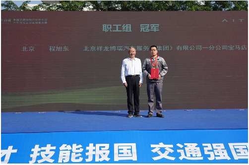 此次大賽職工組共有來自全國42家企業的45名選手參加。各參賽選手在賽場上揮灑汗水、頑強拼搏,充分展現了新能源汽車維修工的專業素養與精神風貌。北京祥龍博瑞汽車服務(集團)有限公司程旭東獲得職工組個人第一名,北京市交通委員會代表隊獲得職工組團體第一名。