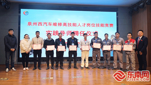 根據(jù)比賽結(jié)果,總成績第一名的選手吳煌冰被授予“鯉城區(qū)技術(shù)能手”稱號;前7名獲獎選手及“泉州西汽車維修高技能人才共建共享基地”校內(nèi)負(fù)責(zé)人蔣清源、校外基地負(fù)責(zé)人盧鵬被聘任為“泉州西汽車維修高技能人才共建共享基地”實踐導(dǎo)師。