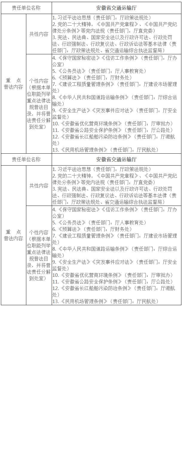 2024年度安徽省交通運(yùn)輸廳“誰執(zhí)法誰普法”普法責(zé)任清單
