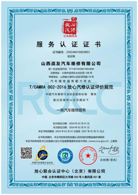 山西戰友始終堅持以質量求生存、以服務為導向,堅持軍隊紅色基因優良傳統,并多次參加中央首長到訪山西的安保勤務任務,受到北京、省委主要領導的高度肯定與嘉獎。公司連續多年通過質量、環境、健康三體系、放心汽修等權威認證,并且是山西省汽修協會副會長單位。