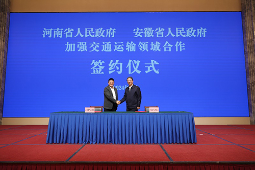 3月21日,安徽省人民政府、河南省人民政府在鄭州市舉行交通運輸領域合作簽約儀式并召開座談會。安徽省副省長單向前、河南省副省長劉尚進代表兩省政府簽署加強交通運輸領域合作協議。