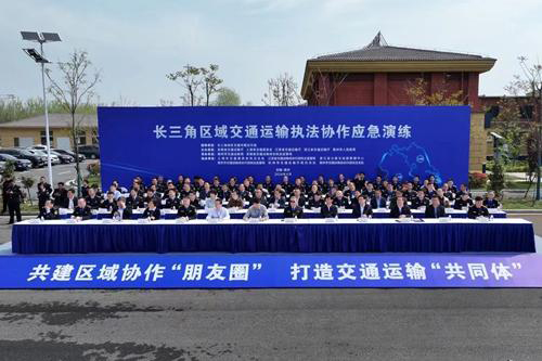為進一步提高長三角區域交通運輸執法協同治理、聯防聯控能力,打造共建共管共治的交通運輸一體化治理格局, 4月11日,長三角區域首次交通運輸執法協作應急演練在滁州舉行。本次演練由長三角地區交通專題合作組指導,安徽、江蘇、浙江、上海三省一市交通運輸主管部門、滁州市人民政府聯合主辦,共有8家參演單位90余名人員參加演練。交通運輸部、安徽、江蘇、浙江、上海三省一市120余名領導同志現場觀摩指導,安徽省交通廳黨組成員、總工程師晏少鶴,滁州市委常委、政法委書記、市政府黨組成員龔健勇出席現場并講話。局領導金同碧、曹連元參加。