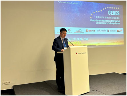 2024年9月中旬,我會(huì)秘書長底彥彬、副秘書長康學(xué)楠受德國法蘭克福展覽有限公司邀請(qǐng),參觀2024年德國法蘭克福國際汽車及零配件展覽會(huì)(Automechanika Frankfurt),展會(huì)同期出席第二屆中歐汽車后市場(chǎng)企業(yè)家交流會(huì)并發(fā)言,隨后對(duì)德國汽車后市場(chǎng)相關(guān)企業(yè)進(jìn)行調(diào)研考察。