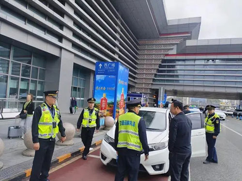 貴陽北站作為旅客集散的重要場所,其站場秩序直接關系到旅客的出行體驗。針對部分不法分子在高鐵站周邊喊客拉客的行為,聯合調度中心通過視頻監控和現場巡查相結合的方式,安排執法人員協助公安部門開展行動,成功鎖定并驅離了喊客拉客人員57名。同時,在進行執法巡查中開展安全宣傳工作,積極向出站旅客宣傳乘坐正規車輛的重要性,提醒旅客切勿輕信路邊拉客人員的花言巧語,以免上當受騙。