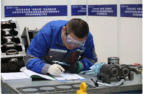 10月25日,2024年山東省“技能興魯”職業技能大賽——山東省汽車行業職業技能競賽重型車輛維修技術汽車發動機裝調工項目在青島市技師學院舉行。本次賽事由山東省人力資源和社會保障廳指導,山東省汽車行業協會主辦,青島市技師學院承辦,山東英創天元教育科技有限公司協辦,吸引了來自全省12家汽車制造與維修企業和各類院校在內的共32名專業技能人才參賽。