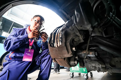 此次大賽分為理論競賽與實(shí)操競賽兩部分。理論考場內(nèi),考生們專注瀏覽試卷,全神貫注作答;實(shí)操賽場上,參賽選手們沉著冷靜,憑借多年維修經(jīng)驗(yàn),完成電驅(qū)動(dòng)車故障判斷及排除,盤式車輪制動(dòng)器檢查、調(diào)整與動(dòng)力電池檢查維護(hù),汽車零件圖測繪及電器元件測量等項(xiàng)目的考核。