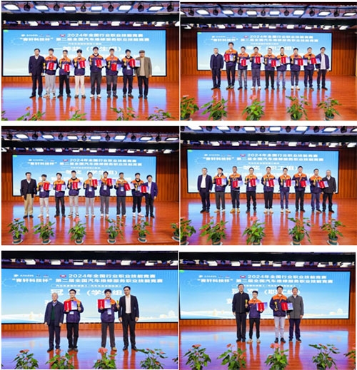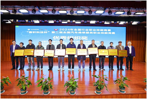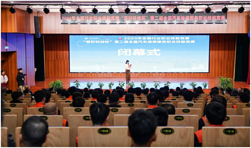 張延華致閉幕辭。他總結回顧了本屆競賽的組織情況并指出,競賽成功舉辦離不開各級管理部門、地方行業協會、行業企業、職業院校以及媒體單位的大力支持,離不開廣大職工、師生、專家裁判的積極參與和辛勤付出,謹向各方面表示誠摯的謝意和崇高的敬意。他強調,希望全體選手要把競賽當作新的起點,乘大賽東風,腳踏實地,不懈努力,用勤勞和智慧創造美好生活,用技能點亮精彩人生,為國家、社會和行業發展做出新的更大貢獻。他表示,大賽深入貫徹“賽展會”結合的辦賽要求,競賽期間同步舉辦了汽車維修業綠色發展論壇、全國汽車維修行業協會秘書長聯席會、團體標準宣貫會、汽車鈑金涂裝設備展等活動,是推動產教融合的一次具體實踐。協會將以此為契機,深化與職業院校、行業企業的合作,持續推動產教融合、協同發展,不斷拓展新時代汽車后市場技能人才培養領域,為促進行業高質量發展、推進維修業高技能人才隊伍建設貢獻力量。