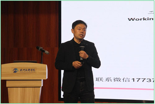 杭州技師學(xué)院副校長(zhǎng)沐俊杰做《綠色維修人才培養(yǎng)的思考與實(shí)踐》主題發(fā)言,介紹了學(xué)校技能人才培養(yǎng)中面對(duì)綠色發(fā)展、新能源轉(zhuǎn)型挑戰(zhàn)的新思路以及產(chǎn)教融合新模式。