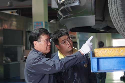 “汽車維修應(yīng)該要與人相結(jié)合,只有學(xué)習(xí)汽車文化、了解汽車發(fā)展、熱愛汽車維修,才能提升維修技能,我要做汽車文化的弘揚(yáng)者、汽車技術(shù)的傳播者。”為了堅(jiān)定這一信念,陶巍帶領(lǐng)團(tuán)隊(duì)前往新疆、云南等地,了解當(dāng)?shù)仄嚶殬I(yè)教育發(fā)展、考察當(dāng)?shù)仄嚲S修技術(shù)水平。他還組織當(dāng)?shù)乩蠋煛W(xué)生到上海幼獅高級(jí)轎車修理有限公司進(jìn)行系統(tǒng)培訓(xùn)的方式,打造出一支學(xué)習(xí)能力強(qiáng)、創(chuàng)新水平高、業(yè)務(wù)素質(zhì)精的技能人才隊(duì)伍。