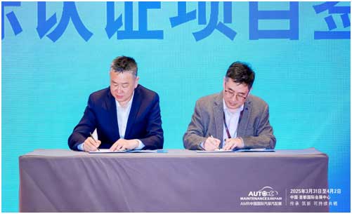 會上,底彥彬與馮鋼分別代表中國汽車維修行業協會、Prometric LLC (普爾文有限公司)就新能源汽車維修技師國際認證項目進行了戰略合作簽約,雙方將共同推進汽車服務人才的跨國認證與技能標準互認,為汽車服務出海提供有力支撐。